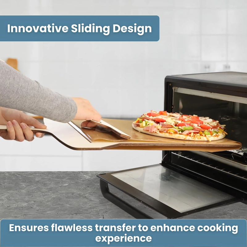 Elevate your home baking with the Ultimate Non-Stick Pizza Peel Shovel Set, designed for both amateur cooks and seasoned chefs. Crafted from high-quality natural wood, this pizza transfer shovel is not only durable but also safe for food contact, free from any harmful substances. Its non-stick surface ensures that your culinary creations slide off without effort, preserving their perfect shape and tempting appearance. Complete with a silicone brush and pizza cutter wheel, this set equips you with everything needed for the perfect pizza night.